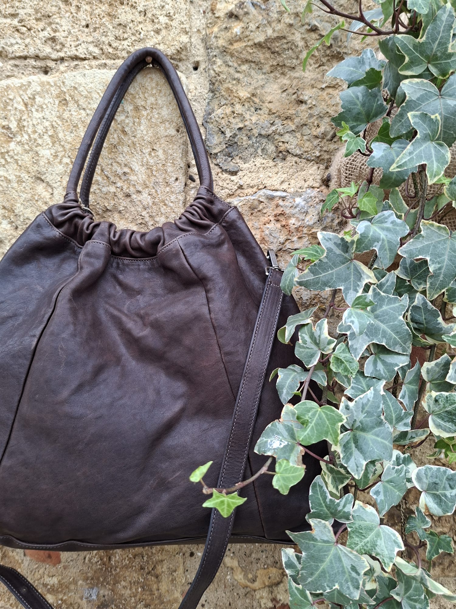 Puoi indossarla a mano o a spalla oppure utilizzare il laccio in pelle per indossarla a tracolla.