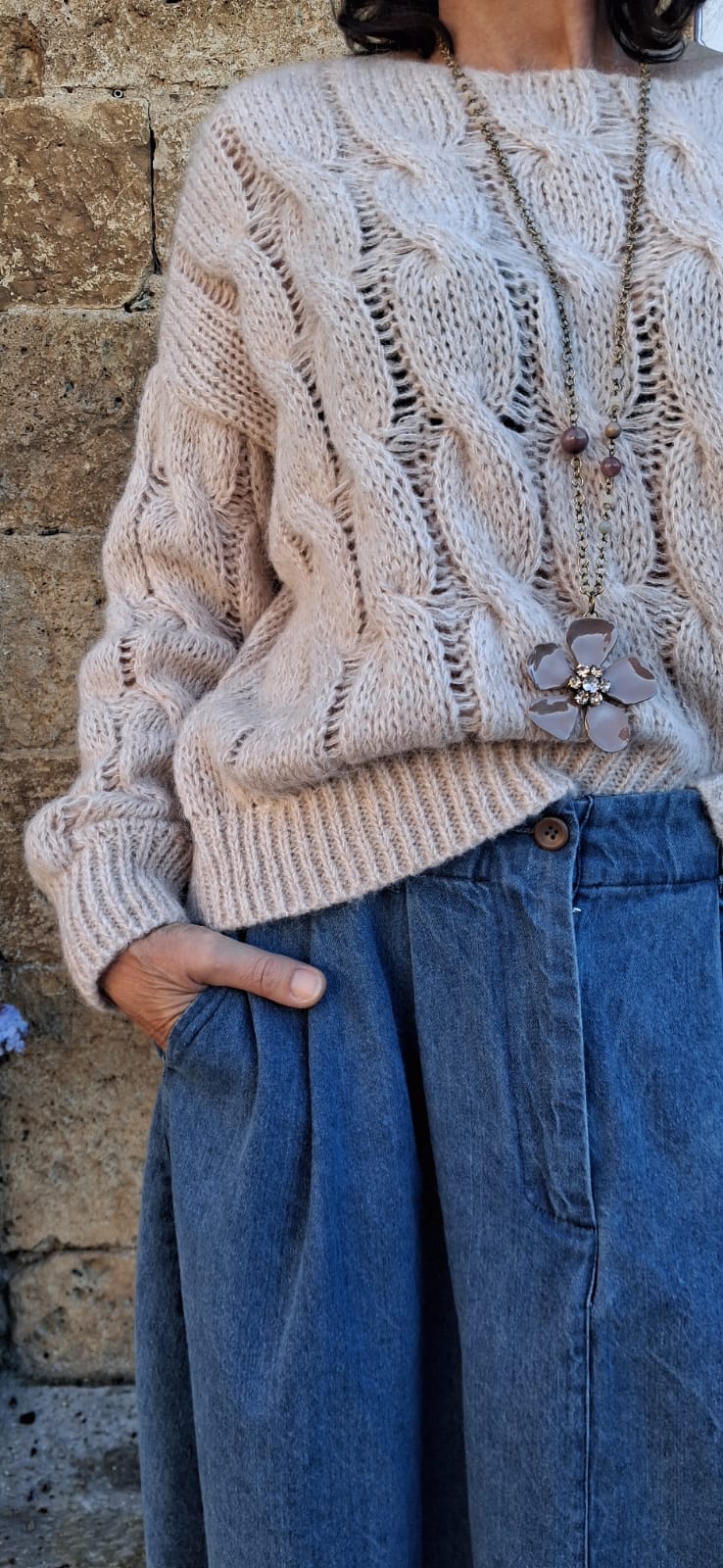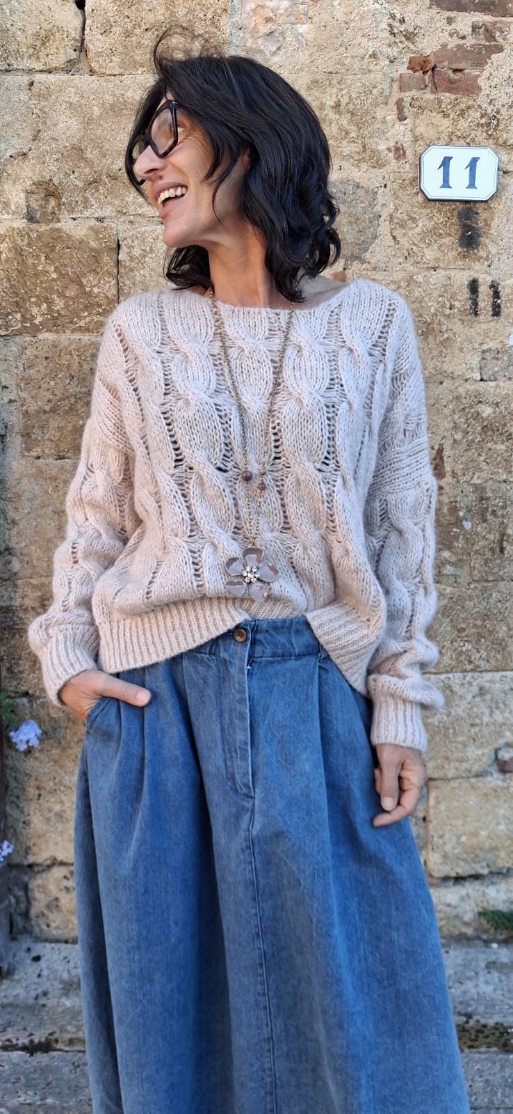 La maglia con treccia in misto mohair ti permette quando la indossi di sentirti un pò vintage con la maglia della nonna,